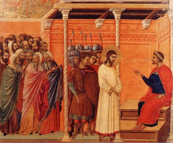 | Chrystus przed Poncjuszem Piłatem, Duccio di Buoninsegna (zm. 1319 r.) |