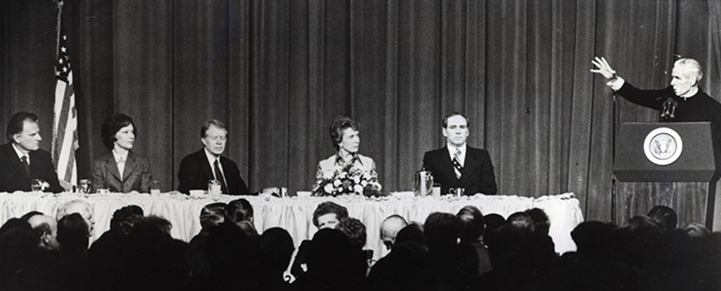 „Panie prezydencie, jest pan grzesznikiem” – powiedział arcybiskup Fulton Sheen, spoglądając na prezydenta Jimmy’ego Cartera i pierwszą damę Rosalynn Carter, zasiadających na podium podczas Narodowego Śniadania Modlitewnego 18 stycznia 1979 roku. Skupiwszy na sobie uwagę wszystkich, dodał: „I ja jestem grzesznikiem”.